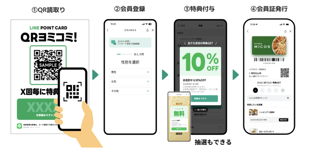POP等に掲示したコードを読み込み会員登録。ご来店のお客様には簡単にご利用いただけます。